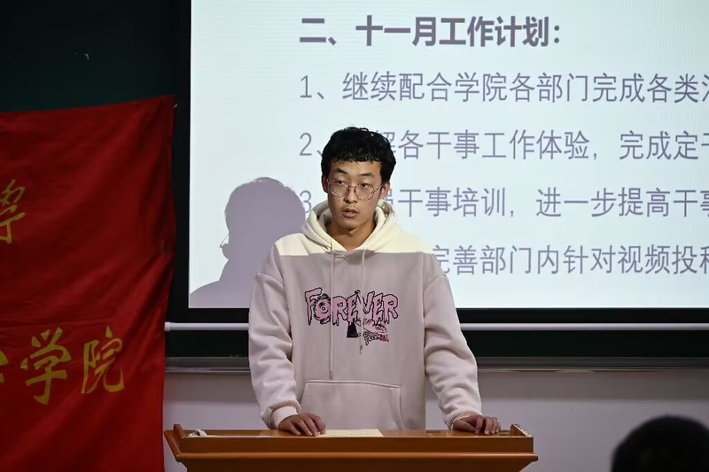 随后,各部门部长围绕十月工作展开复盘,在总结经验的基础上,精准指出当前工作中存在的不足,并针对性提出改进措施;同时,就十一月具体工作进行详细部署,强调全体学生干部需严格遵守工作纪律、高效落实工作任务,确保各项工作稳步推进。
