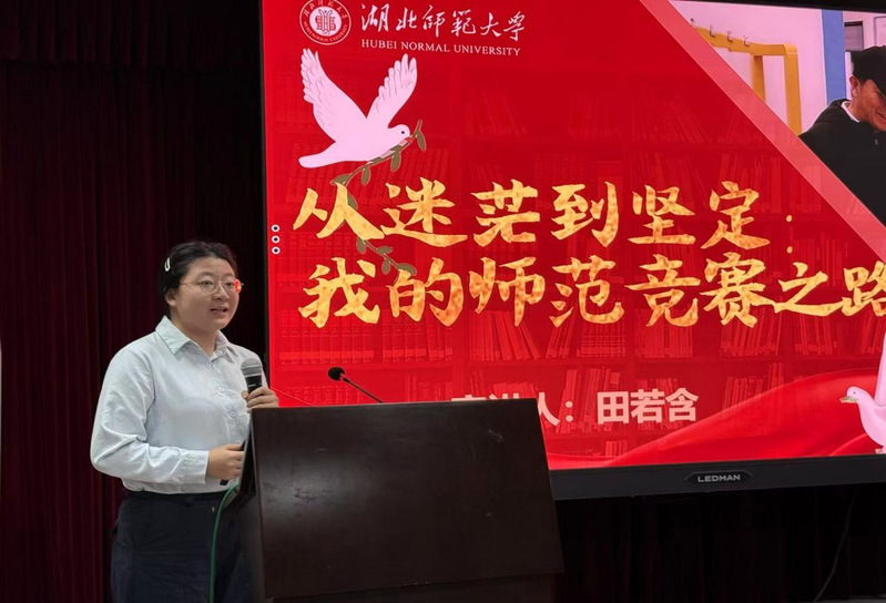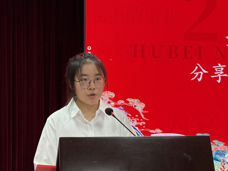 “学模范”环节中,优秀学子田若含分享成长故事。她与团队协作互勉,在竞赛中突破瓶颈、勇攀高峰的奋斗故事引发全场共鸣,让“榜样就在身边、道德可学可及”的理念深植学子心间。