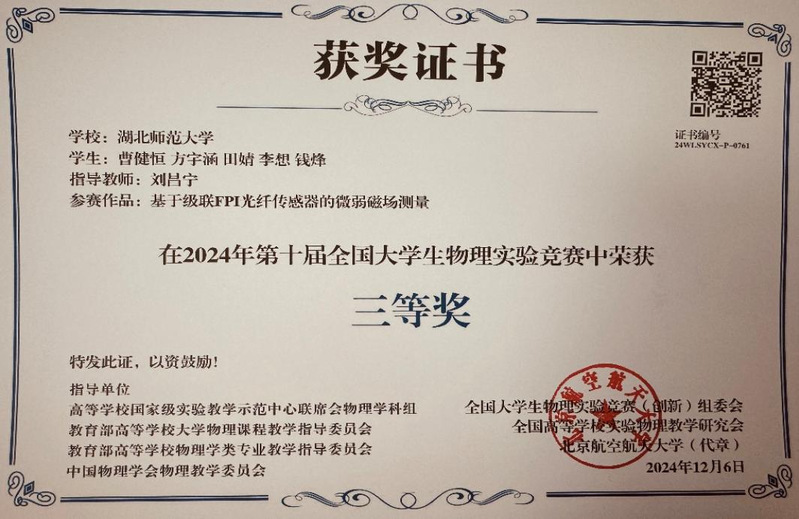 刘昌宁,男,工学博士,副教授。长期致力于飞秒激光微纳加工与光纤传感技术的研究,并积极推动相关成果向教学转化。主讲《光电子技术基础》《光纤传感技术》《激光原理与激光技术》等多门核心专业课程。