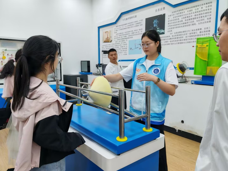 9月21日下午,湖北师范大学寻物之理科普社接待“国培计划”初中化学学员,组织开展校园文化观摩活动。科普社讲解员团队聚焦生动有趣的科学实验,为来访学员打造了一场“知识+趣味”的沉浸式科普盛宴。