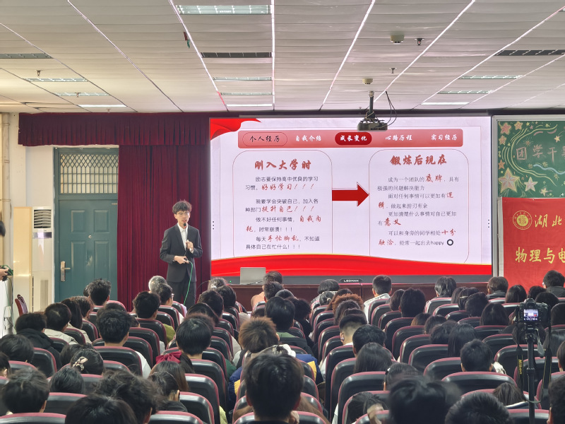 11月29日,张宇彤以自身蜕变历程为蓝本,分享了问题解决、团队管理与心态调整的实用经验,强调“永远把关注点放在解决问题上”的工作逻辑。陈奕霖围绕师范竞赛之路展开分享,详细解读了“田家炳杯”等各类竞赛的报名时间、备赛技巧与评分标准,鼓励同学们以“试错”姿态勇敢参与实践历练,在竞赛中提升专业能力。