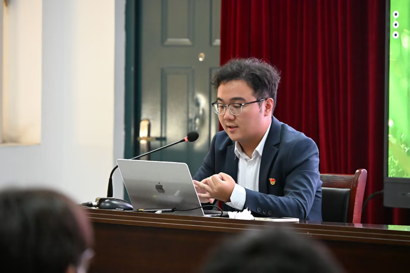 陈卓君则以“向下扎根,向上生长”为主题,结合学生干部经历,从“从迷茫到明晰”“从效仿到创新”“从入门到精通”三个部分,分享了干事成长、活动策划与团队协作的心得,通过情景演绎的方式讲解了会议组织等具体工作的开展方法,并介绍了青马工程对青年政治素养与综合能力的培养价值。