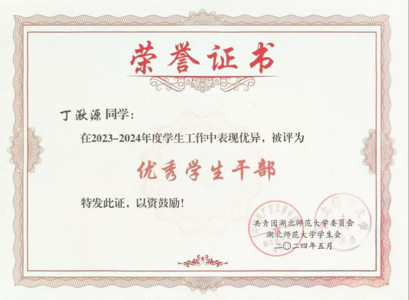 “让青春在奋进中绽放光芒。”用勤学筑牢根基,用创新突破边界,用奉献诠释担当。这是湖北师范大学一名电子信息专业青年的求索,也是新时代青年党员丁湫源用奋进、创新与实践书写的青春答卷。