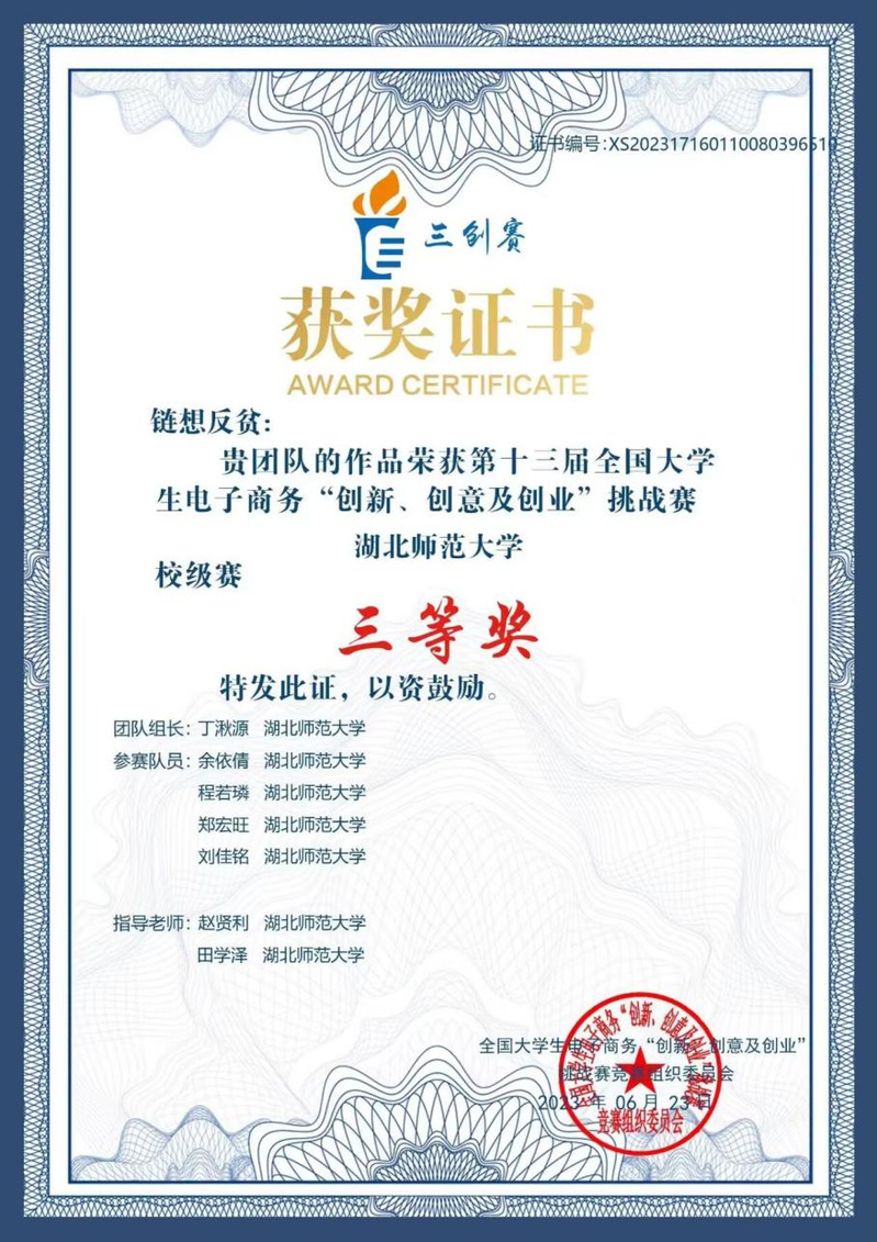 她以赛促学,在创新创业的浪潮中乘风破浪。她积极投身学科竞赛,带领团队在高水平赛事中屡获佳绩:从“互联网+”到“三创赛”,从英语词汇竞赛到职业创新创业大赛,从湖北省的“挑战杯”到中国国际大学生创新大赛。她累计获得省级奖项2项、校级奖项19项。她坚信实践是成长的沃土,用创新突破边界,用思考助力社会发展,用不懈努力诠释着新时代青年“科技报国”的理想。她说:“比赛不是终点,而是让技术扎根社会的起点。”