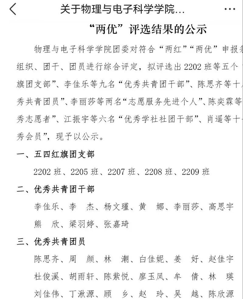 丁湫源,女,回族,中共党员,湖北师范大学物理与电子科学学院电子信息工程专业2022级本科生,物电学生第二党支部宣传委员,曾任物电2207班团支书等。国家奖学金、综合一等奖学金、综合二等奖学金获得者,湖北省“挑战杯”铜奖、中华职业教育创新创业大赛三等奖得主,省级大学生创新创业训练项目优秀结项者,校“三好学生”“优秀学生干部”“优秀共产党员”等荣誉称号获得者,累计志愿服务219.7小时,校级优秀志愿者,湖北师范大学第十四届十佳大学生获得者。