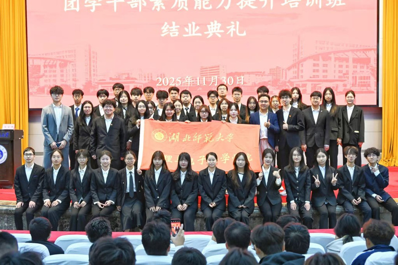 11月30日晚,物理与电子科学学院于教育大楼报告厅举办团学干部素质能力提升培训班结业仪式。出席本次活动的有学院团委副书记田学泽,学院全体团学干部及24级,25级各班班长。本次活动由学生会主席刘河出幸主持。