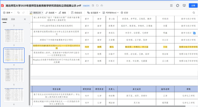 3、湖北师范大学2025年度师范生教育教学研究项目立项,校级立项;