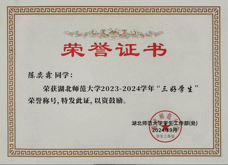 3、2024年10月获得三好学生;