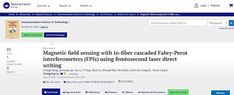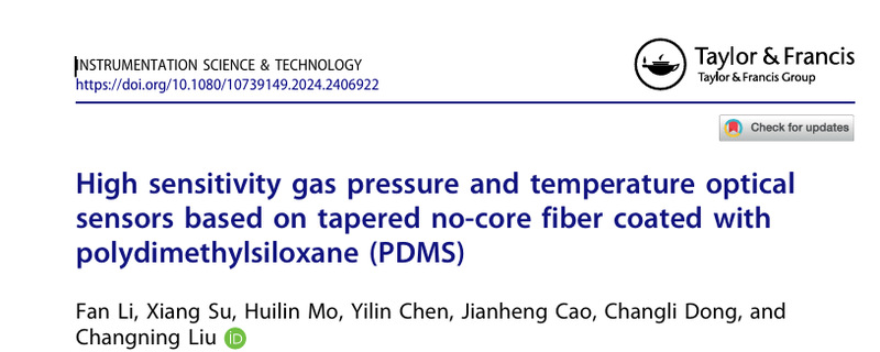 2、《High sensitivity gas pressure and temperature optical sensors based on tapered no-core fib》-Instrumentation Science & Technology国家级;