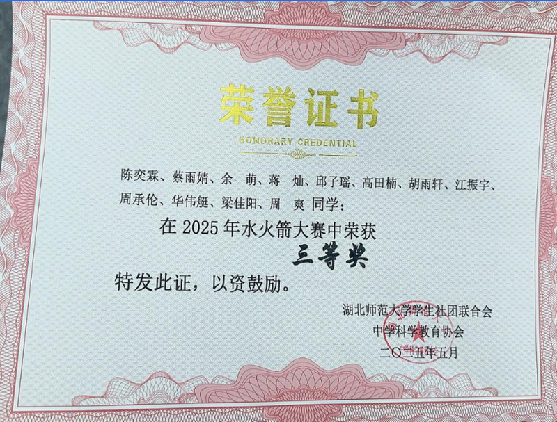 16、2025年湖北师范大学水火箭大赛,校级三等奖;