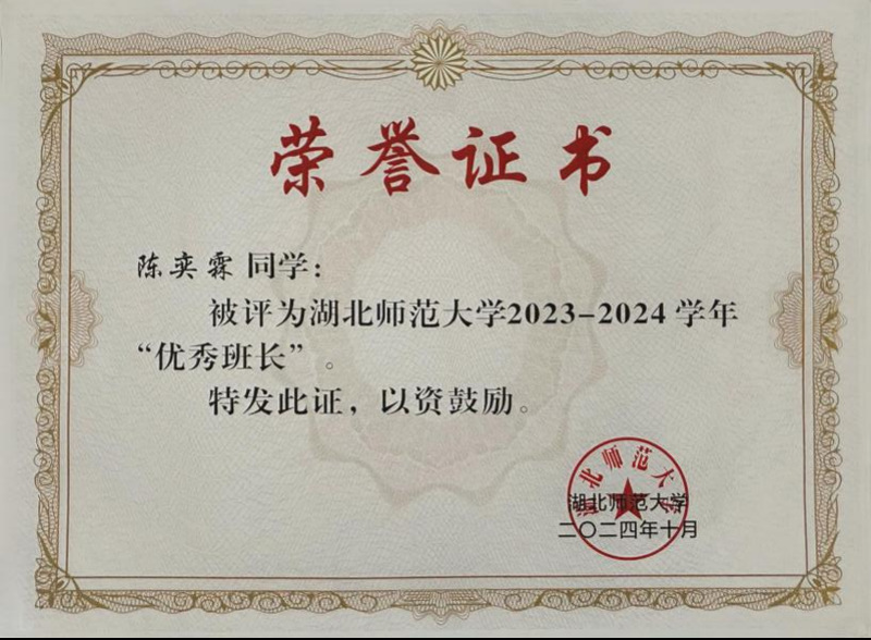 2、2024年10月获得优秀班长称号;