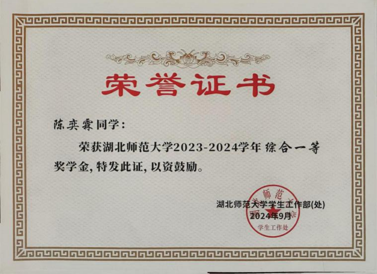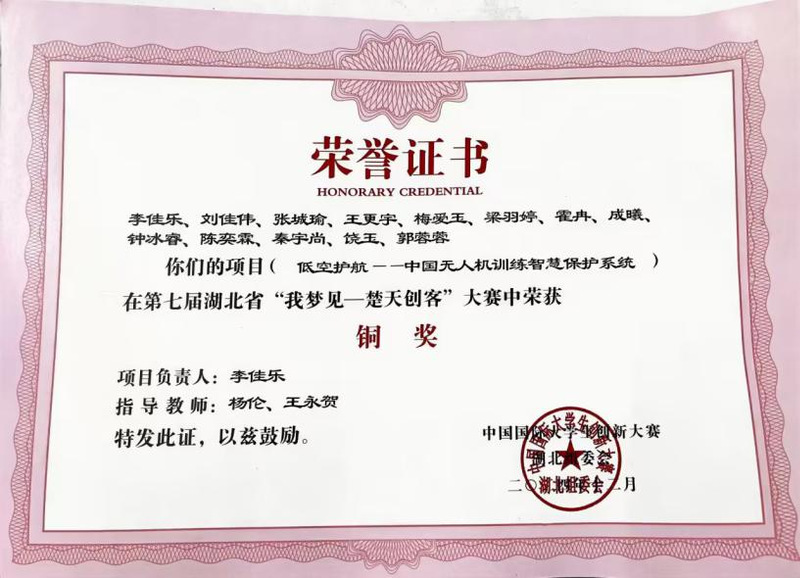 1、湖北省第十五届“挑战杯”大学生课外学术科技作品竞赛,省级,一等奖;