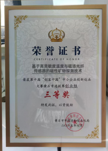 9、第十届“创客中国”中小企业创新创业大赛黄石市选拔赛创业组,市级三等奖;