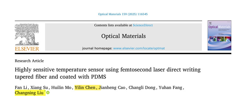 3、《Highly sensitive temperature sensor using femtosecond laser direct writing tapered fiber and coated with PDMS》国家级;