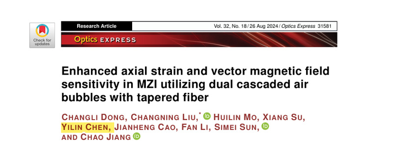 1、《Enhanced axial strain and vector magnetic field sensitivity in MZI utilizing dual cascaded air bubbles with tapered fiber》-Optics Express国家级;