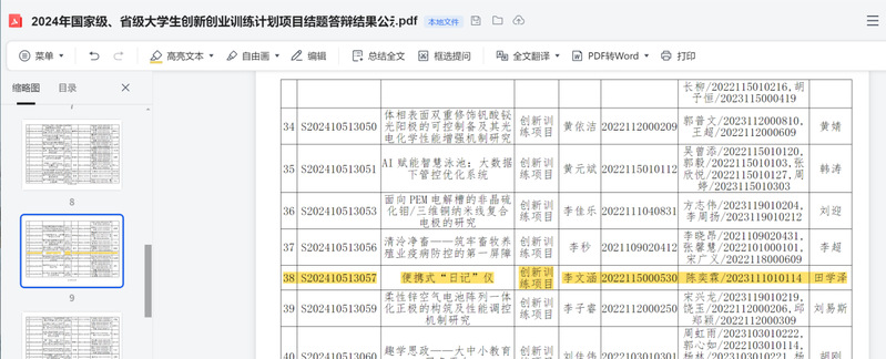 2、2024年6月立项且结项,便携式“日记”仪(D202406030954490001),省级,大学生创新创业训练计划项目;