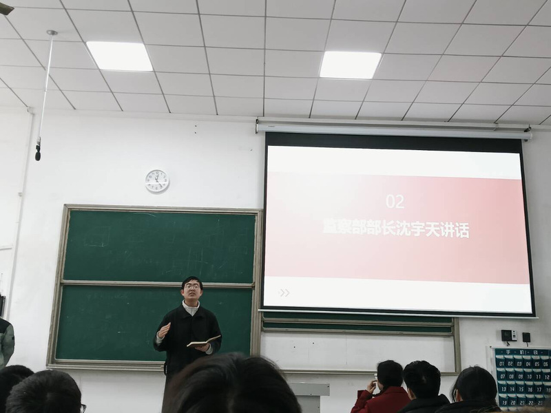 随后,监察部部长沈宇天就教学日志上交、周一通报检查、信息核对转发以及请假流程等工作再次进行强调。学习部副部长洪钧辉针对积分补录表格的信息填写作出详细说明,并鼓励学委在活动举办方面多与学习部沟通协商。
