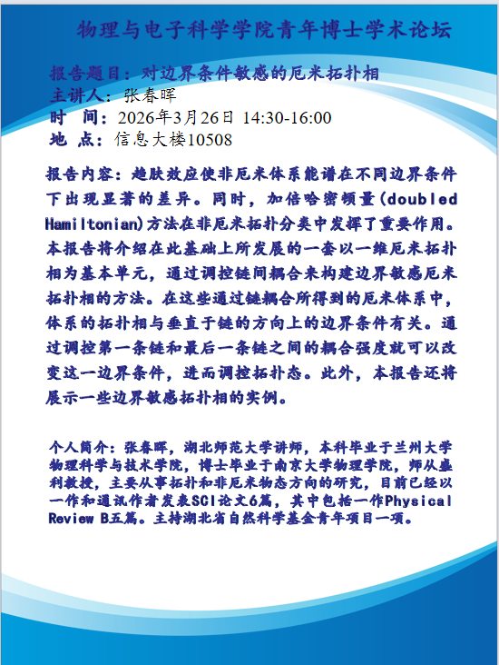报告预告:对边界条件敏感的厄米拓扑相
